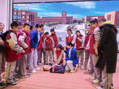 活动中,护理人员根据小学生的认知特点,将专业知识转化为通俗易懂的语言与生动趣味的实操演示。在急救技能教学环节,针对儿童常见的心肺复苏和异物卡喉场景,护理人员借助模拟人教具逐步分解操作要领,帮助孩子们理解施救原理。同学们踊跃参与模拟练习,现场学习氛围浓厚。