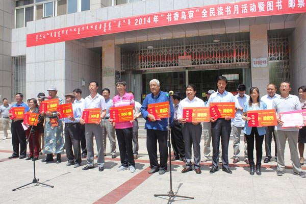 启动仪式上表彰奖励了“书香乌审·书香校园”、“书香乌审·阅读家庭”、书香乌审读书形象大使。