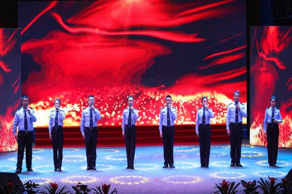 活动上,为基层从警20年民警、退休民警代表、警嫂代表颁发了纪念奖杯。退休民警将象征着乌审公安精神的旗帜传授给新警,新警举行入警宣誓仪式。歌伴舞《不忘初心》、朗诵《老警的芳华》、双警家庭代表的讲述、退休民警的深情回忆……让现场观众感受到了乌审民警不忘从警初心、用热血赤胆的警魂铸就矢志不渝的忠诚和担当。