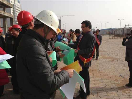 3月15日,人力资源和社会保障局组织开展的“关爱农民工”志愿服务活动在建筑工地怡和写字楼举行。