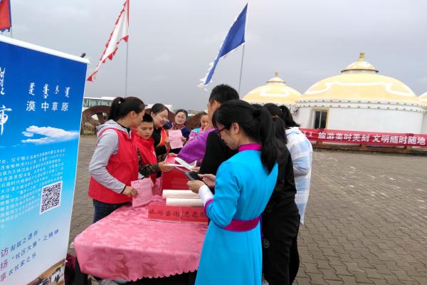 “我承诺:不乱吐乱扔,不踩踏绿地,不攀折花木和果实......”各地来的游客、周边的农牧民、各界媒体记者纷纷前来承诺,并领取自己喜欢的宣传品。“承诺了就要做到,就要践行。”志愿者在不停的强调。近日,乌审旗讲文明树新风志愿服务队以2018年“中国旅游日”系列惠民活动举办为契机,组织开展了文明旅游志愿服务活动。