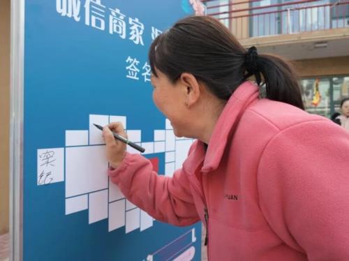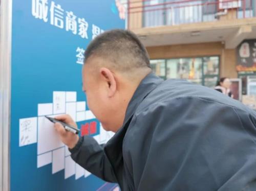 活动最后,乌审旗红街商圈的商家代表们纷纷上台,在“诚信商家 温暖相伴”签名墙上签下自己的名字。这一庄重的承诺,代表着商家们自觉遵守法律法规、诚信经营的坚定决心,他们将积极维护消费者合法权益,为共同营造安全放心的消费环境贡献力量。此次活动,提升了居民的鉴别能力、法律知识与防骗意识,督促了商家诚信经营,营造了公平、公正、安全的消费环境。