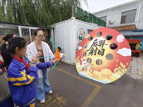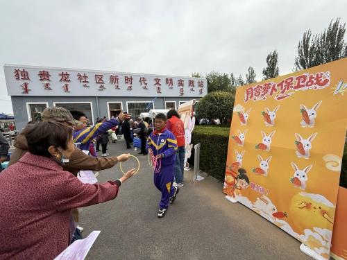 活动现场还设立了大型互动游戏区域,巧妙融合了中秋与国庆元素,让欢乐升级:体验传统蹴鞠的乐趣与中秋锤丸的技艺。“后羿射日”目标精准,“玉兔钓月饼”妙趣横生。“国之大庆·锦绣中华投球”和“月宫萝卜保卫战”等新创游戏,引得居民热情参与,加油声、欢笑声不绝于耳。
