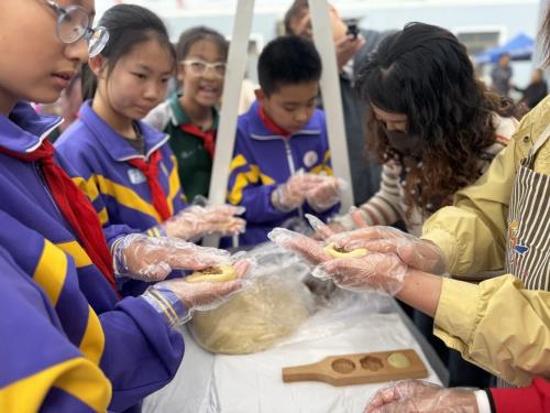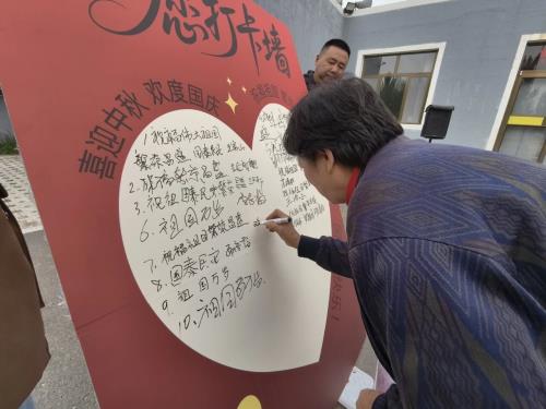 活动精心设置了“国庆”与“中秋”两大主题互动区,内容丰富多彩,吸引了不同年龄段的居民驻足体验:“我为祖国添光彩”国庆区:居民发挥创意,用拓印技术将五星红旗、华表等图案印在帆布包上,制作独特的“爱国伴手礼”;巧手剪纸剪出国旗、国徽等图案,表达爱国情怀;“祝福祖国心愿卡”字字句句饱含深情;巨大的“我和国旗合个影”照片墙前,居民纷纷拍照打卡,留下为祖国庆生的美好瞬间。“花好月圆话团圆”中秋区:此区可谓热闹非凡。孩子们在指导下饶有兴趣地制作灵动的“玉兔灯笼”;色彩缤纷的中秋主题手编画在指尖绽放;诗词接龙环节,大家重温经典,共享“但愿人长久,千里共婵娟”的意境;猜灯谜区人头攒动,益智趣答笑声连连。最受欢迎的要数中秋DIY月饼环节,大家团馅、压模,亲手制作象征团圆的月饼,尝鲜的喜悦溢于言表。