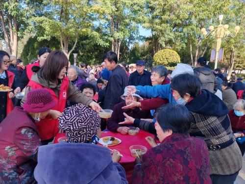 活动现场,文艺演出轮番上演,歌舞节目精彩纷呈,赢得老人们阵阵掌声。依托“五社六站”服务体系,活动设置了多元化服务点,来自各社区、“五社六站”及部分单位的志愿者们,有序开展义剪、义诊、互动游戏、银发留影、政策宣讲等服务,将专业关怀送到老人身边。重阳糕香甜,长寿面暖心。活动现场特意准备了传统美食,老人们围坐一堂,吃面话家常,在味蕾的满足中拉近距离,增进邻里情谊,现场其乐融融。