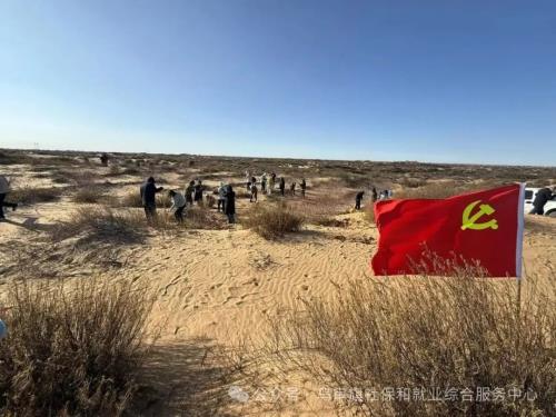 植树现场,党旗迎风招展,成为冬日里一抹最亮丽的色彩。党员干部率先垂范,冲锋在前,充分发挥了先锋模范作用。广大干部职工紧随其后,热情高涨,干劲十足。大家默契协作,分工有序,挥锹铲沙、扶苗填坑、培土踩实……每一个步骤都一丝不苟,衔接流畅。经过一番辛勤劳作,一株株新栽下的沙柳苗整齐排列,傲然挺立在微寒的空气中,错落有致,展现出蓬勃的生机与活力,为初冬的大地描绘出充满希望的绿色画卷。