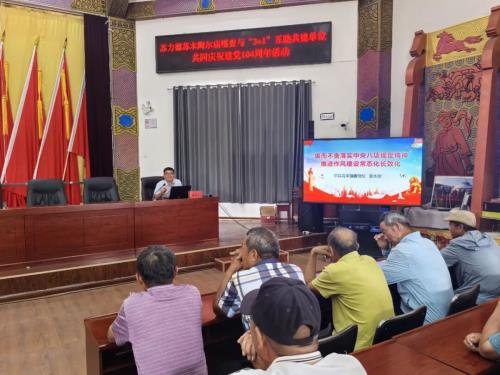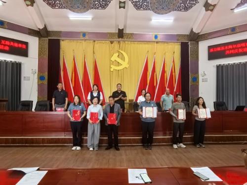 为热烈庆祝中国共产党成立104周年,全面、深入学习贯彻习近平新时代中国特色社会主义思想,持续强化党员思想政治教育,2025年7月1日,旗委社会工作部携手包联嘎查村陶尔庙嘎查,联合开展了意义非凡的建党104周年系列活动。此次活动以“感党恩 听党话 跟党走”为主题,通过多元丰富的学习与实践形式,着力增强党员的党性修养,全方位提升党组织的凝聚力与战斗力。