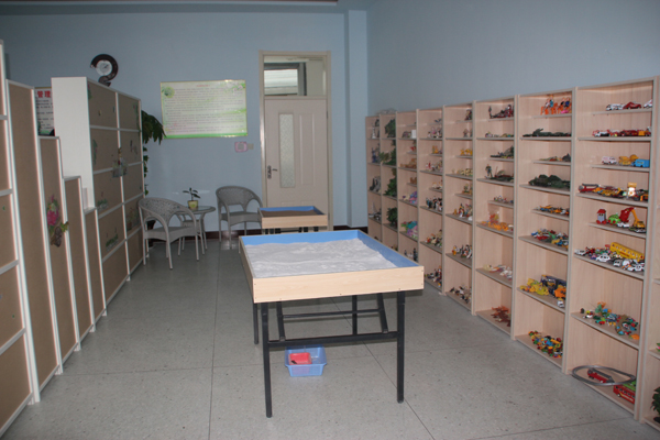 沙盘室设有齐全的沙具和沙箱。沙盘游戏是教师运用沙盘疗法对学生开展个案辅导的 心理治疗方法,它是一种运用意象进行治疗的创造形式,是对“身心、生命、能量的集中提炼”,沙盘中所表现的系列沙盘意象,营造出沙盘游戏者深处意识与无意识之间的持续对话。能够使来访学生找到回归心灵的途径,进而化解身心失调、社会适应不良、人格发展障碍等问题。